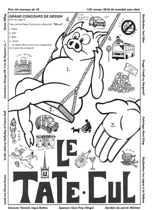 La première page aurait pu comprendre la liste de tous les Tâtes-culs de la ville et du district, mais il aurait fallu passer notre édition au format mondial, ce qui n’arrangeait pas nos vendeurs et distributeurs... Raison pour laquelle nous avons, comme de coutume, préféré imager le propos!