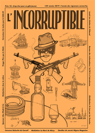 Je vous parle d’un temps... où les politiciens s’engageaient avant tout pour le bien commun, temps béni où cet engagement n’avait rien de carriériste... Ahlala! L’intégrité! La droiture morale... Je ne sais plus déjà qui disait: “Etre honnête, c’est pratique: on n’est pas obligé de toujours se souvenir de ce qu’on a dit!” Pourtant, sans te faire l’injure, Ami lecteur, de traduire le titre de cet édito, figure-toi que, malheureusement, les temps changent! Notre édition 2019, acquise à prix d’or, met en valeur l’essence même de notre Journal (j’allais écrire “notre Institution”) puisque, comme son titre le souligne, la Rédaction de notre canard s’autogarantit 100% Incorruptible! Je ne parle pas des (très) rares correspondants qui glissent à notre intention un petit billet avec leurs bonnes histoires car, à l’instar du tigre du Bengale, d’un Municipal payernois doté d’un minimum de jugeote ou d’un Conseiller communal socialiste sur la Banquise, cette race est quasiment en voie d’extinction... Mais décortiquons un peu notre “une”, si tu le veux bien...